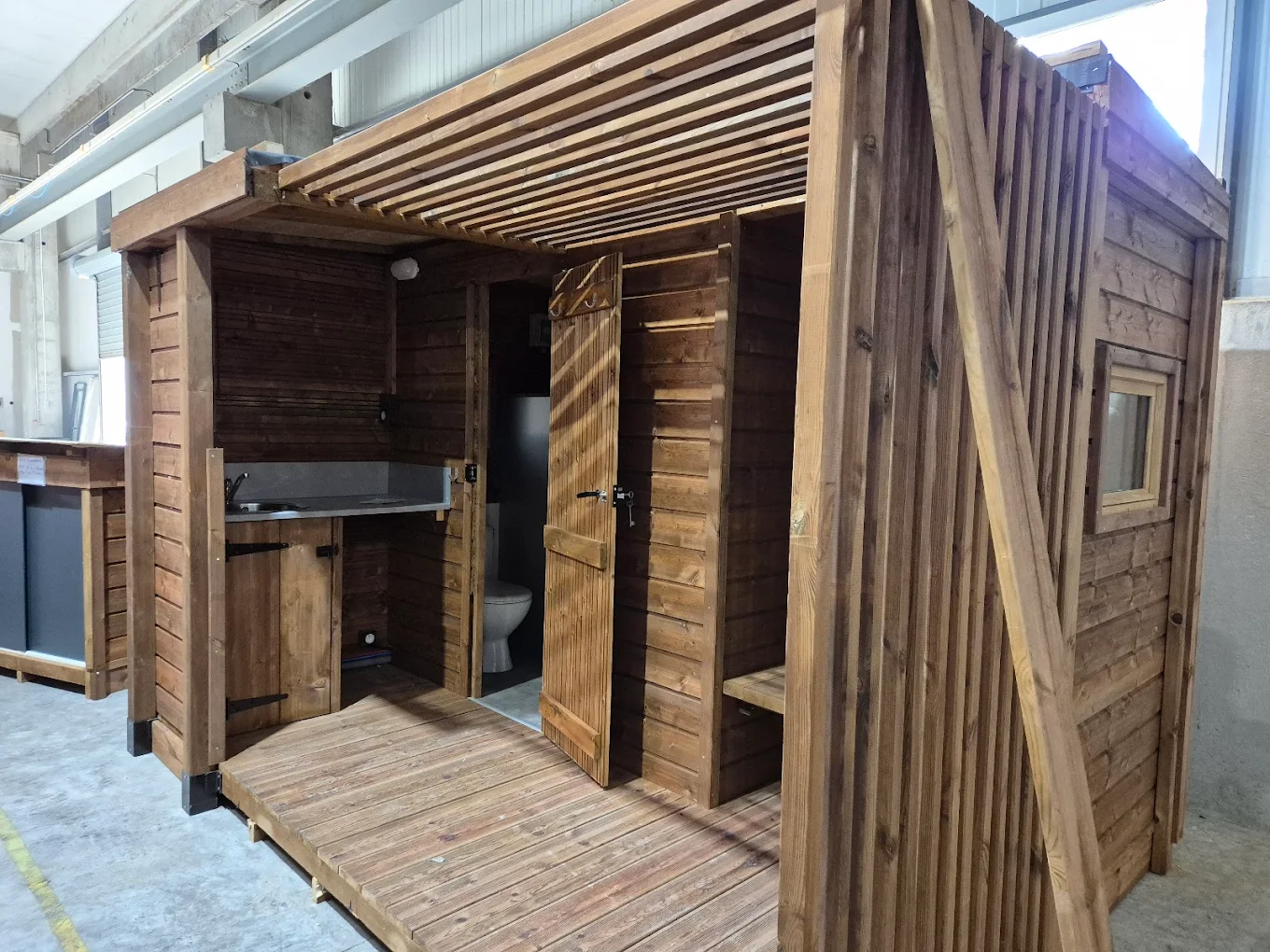Aménagements extérieurs, blocs sanitaires ou structures spécifiques, le bois est au cœur de notre savoir-faire, avec une attention particulière portée à la qualité des matériaux et des finitions.