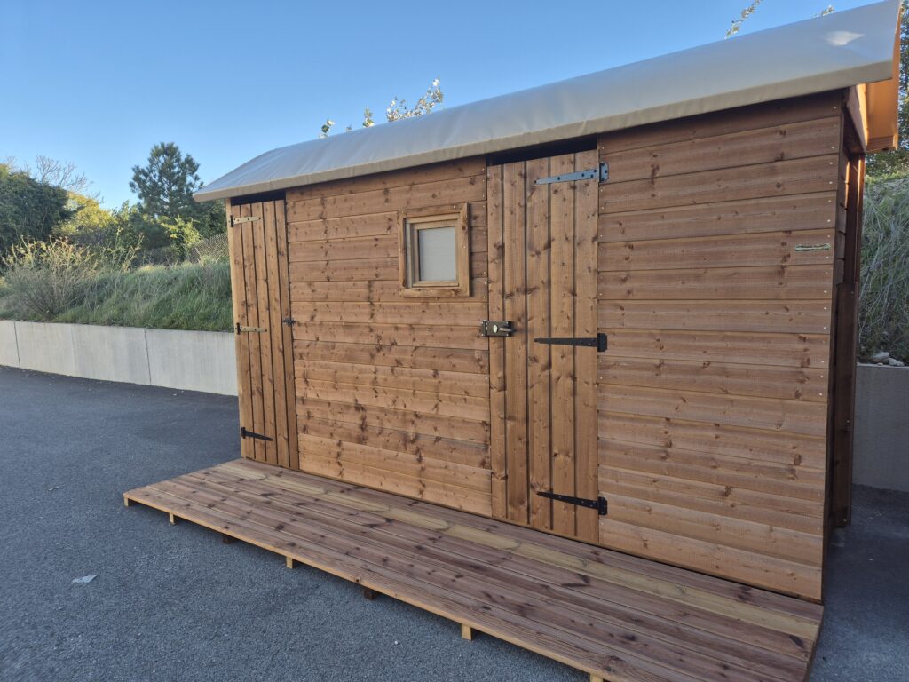 Sa structure bois robuste, associée à une toiture protégée par toile PVC précontraint, garantit durabilité, résistance aux intempéries et confort d’utilisation au quotidien.